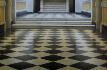 Elzo Dibbets schildert de alledaagse wereld om zich heen. Een interieur, landschap, een park of een stilleven.