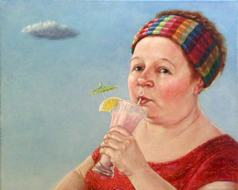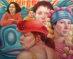 Schilderijen in olieverf van Geeske Harting: Lunapark, Wolkje aan de lucht en Zoektocht