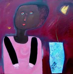 schepten in het maken van kunst. Hij schildert spontaan en heeft nooit een plan