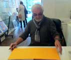 glas, staal en hout en kunstboeken, die hij voorziet van gedichten. Zijn werk