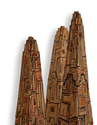 glas, staal en hout en kunstboeken, die hij voorziet van gedichten. Zijn werk